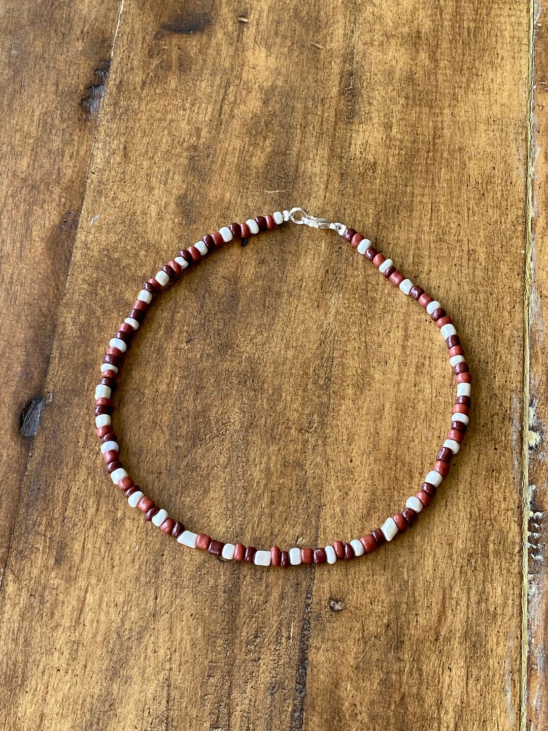 Red And Brown Beaded Choker Glass Bead Choker Vsco Necklace Etsy