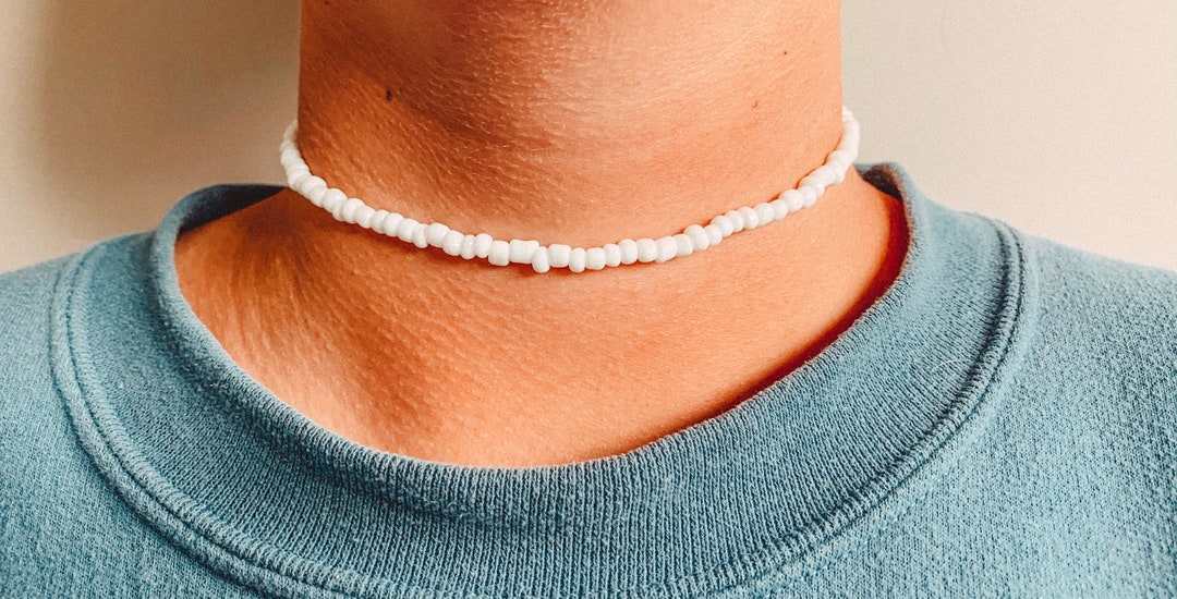 White Beaded Necklace And Bracelet White Glass Beaded Choker Etsy